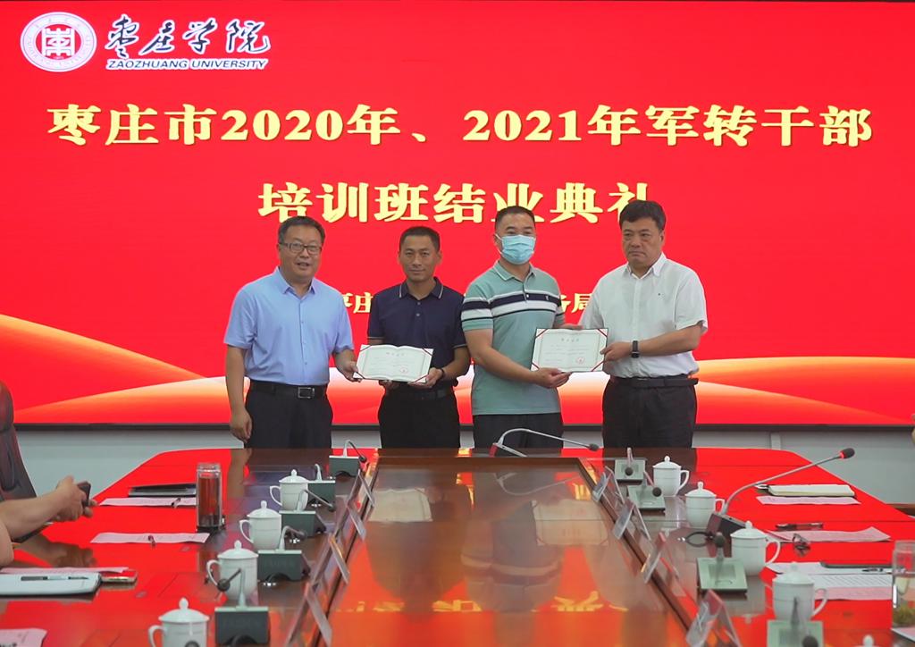 2022年5月27日上午,枣庄市2020年、2021年军转干部培训班结业典礼在AC米兰官网举行,校党委委员、副校长丰雷,枣庄市退役军人事务局党组成员、副局长张成磊,枣庄市退役军人事务局四级调研员王茂权,AC米兰中国官网创新学院学院院长王明高,部分优秀学员代表参加结业典礼,其他学员通过视频会议观看在线直播,典礼由AC米兰中国官网AC米兰中国官网院长张宗海主持。